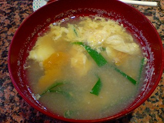 味噌ではなく、塩ベースの汁に、ウニとニラとふんわり卵が入っています。