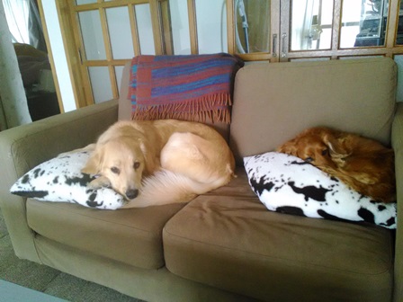 2人ともソファーでクッション枕に昼寝してるようで、、、。