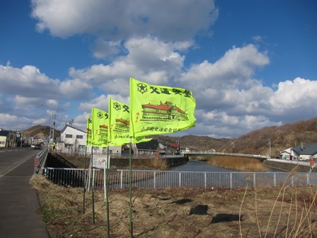旗が真横になびきます。