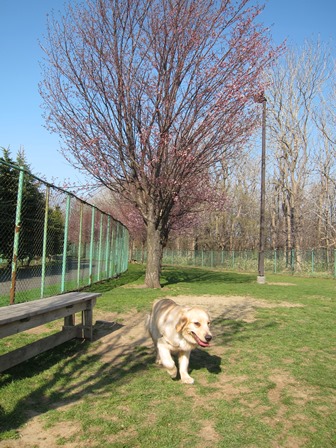 樽川公園ドッグラン。無料のドッグランです。とても広くて、桜が咲いてました。