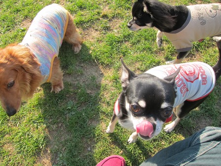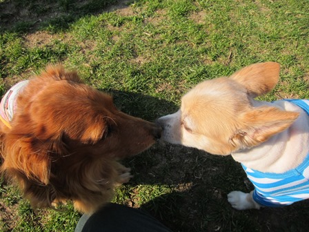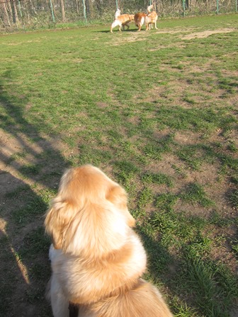 全然写真撮る余裕がなかったけど、大型犬から小型犬まで、いろんな犬種がいて、ハスキー、ブルドッグ、シェパード、エアデェールテリア、、などなど、ゴールデンも5匹もいて、私的には嬉しくなっちゃってたけど、どうもシェルパはゴールデンが苦手みたいで、ゴルちゃんの輪に入らず?入れず?