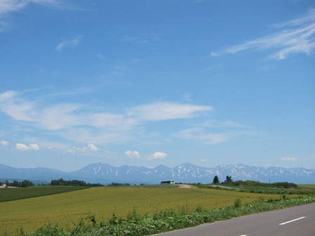 丘陵風景は独特なもので、十勝岳連峰とのコントラストがたまりません。