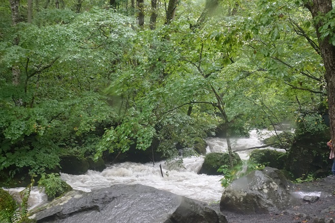 その後、奥入瀬は雨で濁流