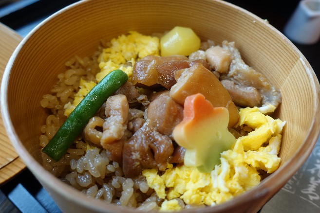 大館市で買った比内鶏弁当と、