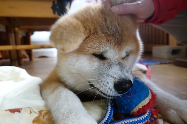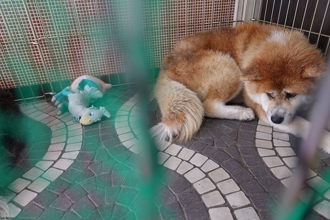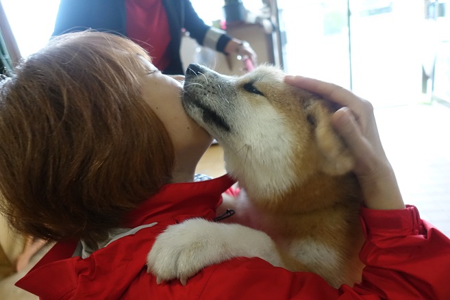この子は元祖看板犬?の「はる」の子供、「はな」、4か月です。