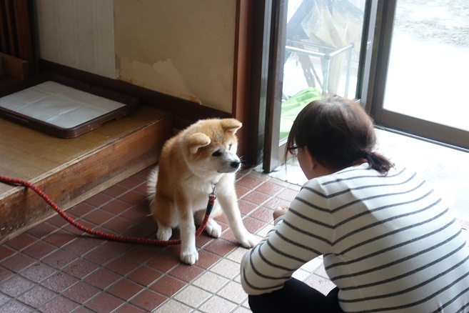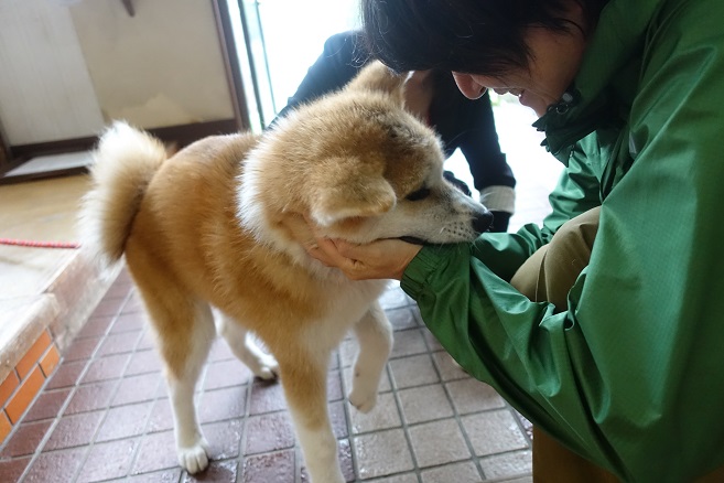 なんだか不完全燃焼なので、秋田犬の看板犬がいる「ふるさわ温泉」へ、女将さん達?がこころよくワンちゃんを連れてきてくれました。