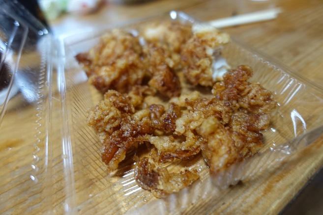 弘前の道の駅で買ったホタテのから揚げを、