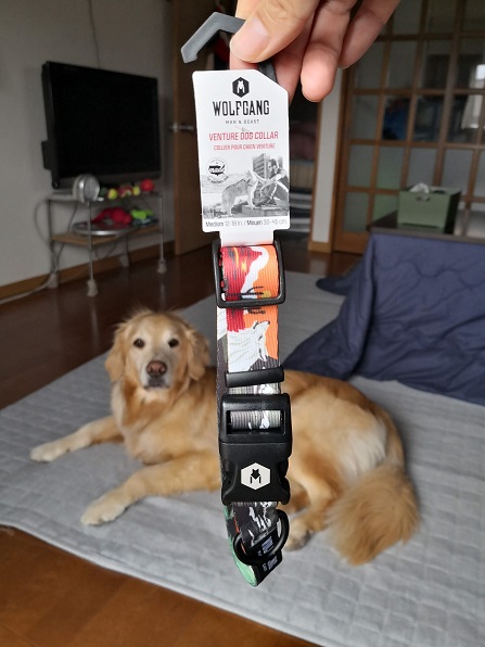 しかしサイズは大型犬なのにM、犬種別チャートではLでしたが、採寸したらM。アメリカンサイズはビッグなのでした。(うちのゴルが小さいのか?)