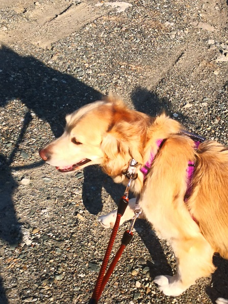 たすき掛けリードは、楽ですが、バカ力シェルパに本気で引っ張られたら、上半身ごと持ってかれそうで怖いです、油断は禁物です。(^_^;)