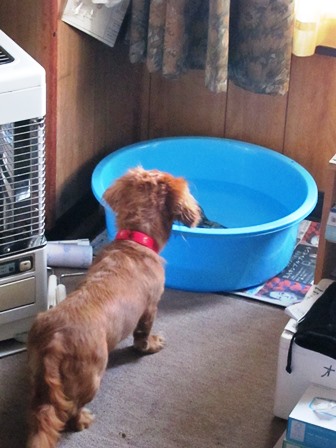 (青いタライで飼ってます)