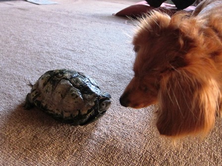 カッコは、くびや足を出したり、しまったりで、応戦してますが、