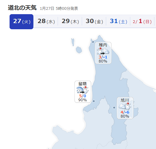 北海道の冬もこれくらいの気温なら過ごしやすいのに、、。